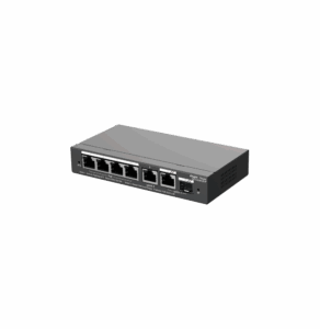 - 6 Ports Gigabit : Inclut 4 ports PoE/PoE+ et 2 ports uplink pour des connexions haute vitesse.